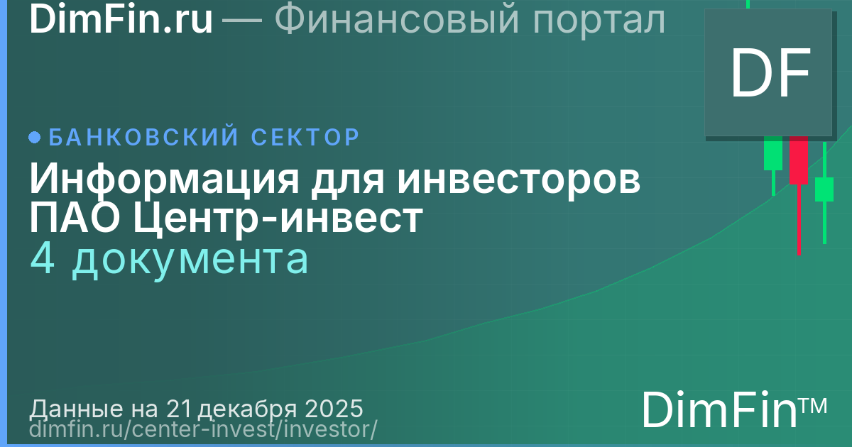 Официальные документы раздела «Материалы для инвесторов» эмитента ПАО коммерческий банк Центр-инвест