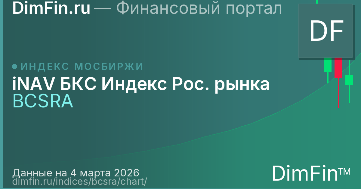 Свечной график iNAV БКС Индекс Рос. рынка (BCSRA) Данные Московской биржи, обновляются в реальном времени.