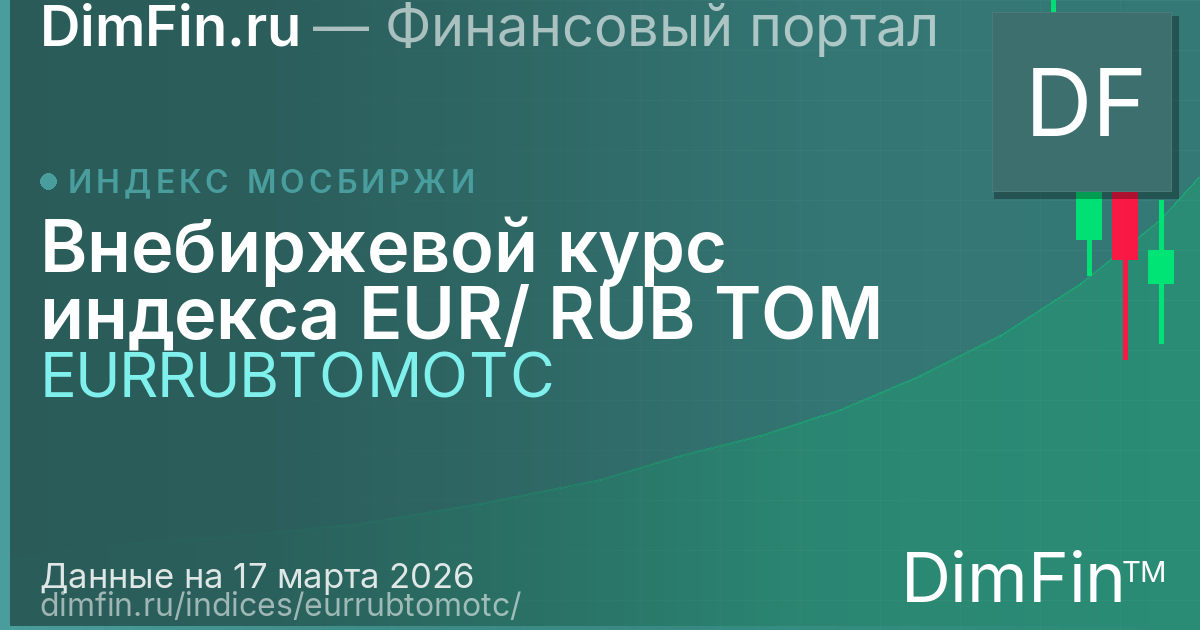 Внебиржевой курс индекса EUR/RUB TOM (EURRUBTOMOTC) — фондовый индекс Московской биржи, специализированный индекс. Рассчитывается в российских рублях.