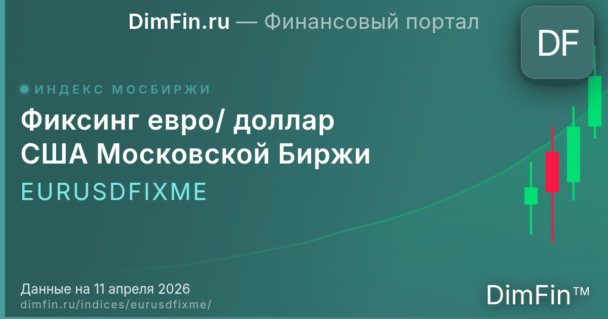 Фиксинг евро/доллар США Московской Биржи (EURUSDFIXME) — фондовый индекс Московской биржи, специализированный индекс. Рассчитывается в долларах США.