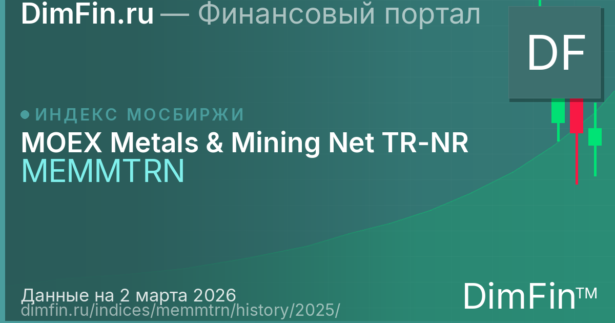 По итогам 2025 года MOEX Metals & Mining Net TR-NR вырос на 1,19%. Максимальное значение составило 14 241,21, минимальное — 10 292,84. Волатильность за год составила 27,2%.