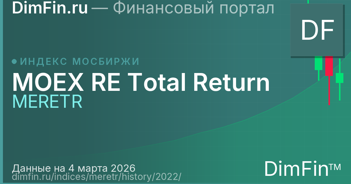 По итогам 2022 года MOEX RE Total Return снизился на 45,38%. Максимальное значение составило 14 019,12, минимальное — 6 115,38. Волатильность за год составила 58,1%.