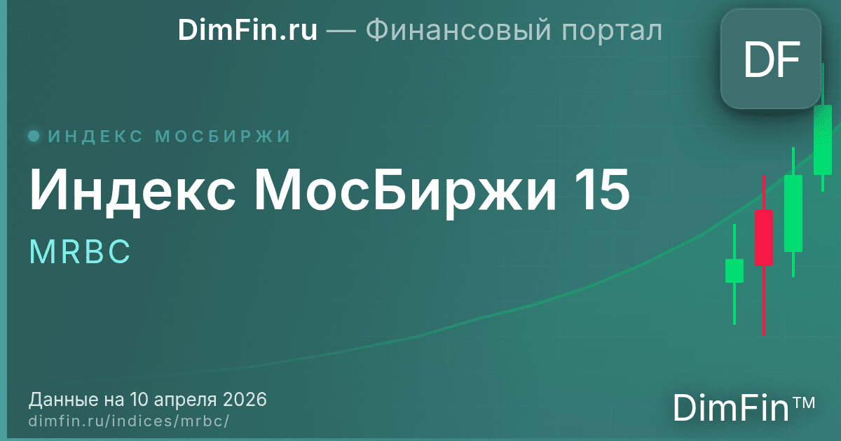 Индекс МосБиржи 15 (MRBC) характеризует состояние российского фондового рынка. В его состав входят 15 наиболее ликвидных акций крупнейших российских компаний, включая ПАО ЛУКОЙЛ, ПАО Газпром, ПАО Сбербанк, ПАО Татнефть и ПАО Т-Технологии. На ПАО ЛУКОЙЛ (9,6%), ПАО Газпром (9,4%) и ПАО Сбербанк (9,3%) (и ещё 2 компании) приходится 44,9% веса индекса. Рассчитывается с 24 марта 2020 года — за 8 лет индекс прошёл через несколько экономических циклов, включая кризисы 2022. Базовое значение на старте составляло 1 000,00 п., текущее — 1 370,36 п. (+37,04% за всё время).