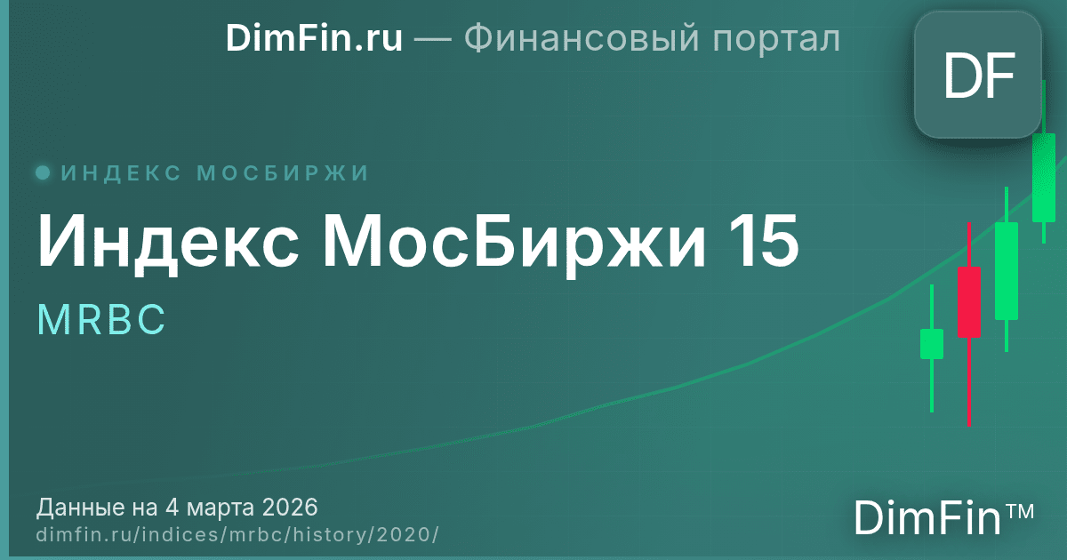 По итогам 2020 года Индекс МосБиржи 15 вырос на 8,43%. Максимальное значение составило 1 669,19, минимальное — 997,79. Волатильность за год составила 27,9%.