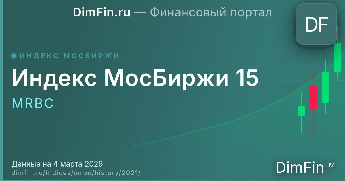 По итогам 2021 года Индекс МосБиржи 15 вырос на 9,41%. Максимальное значение составило 2 048,67, минимальное — 1 631,25. Волатильность за год составила 16,8%.