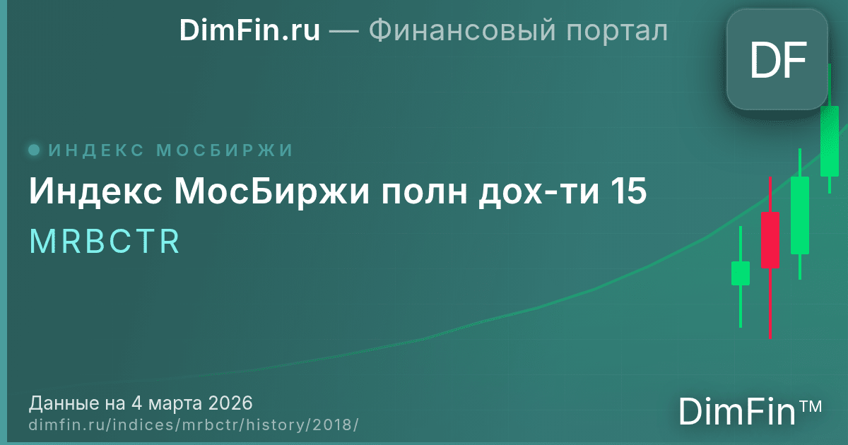 По итогам 2018 года Индекс МосБиржи полн дох-ти 15 вырос на 20,99%. Максимальное значение составило 1 290,17, минимальное — 1 000,49. Волатильность за год составила 17,8%.