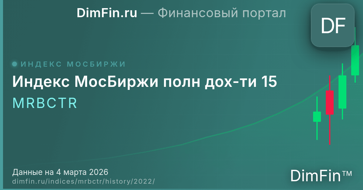 По итогам 2022 года Индекс МосБиржи полн дох-ти 15 снизился на 38,78%. Максимальное значение составило 2 361,92, минимальное — 1 204,44. Волатильность за год составила 53,7%.
