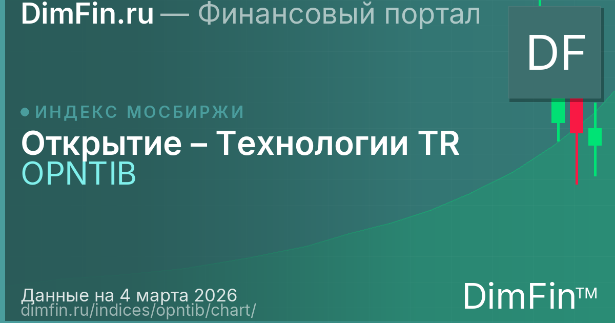 Интерактивный график Открытие – Технологии TR (OPNTIB) отображает динамику индекса в режиме свечного графика. Каждая свеча показывает цену открытия, максимум, минимум и закрытие за выбранный период. Зелёные свечи означают рост, красные — снижение.