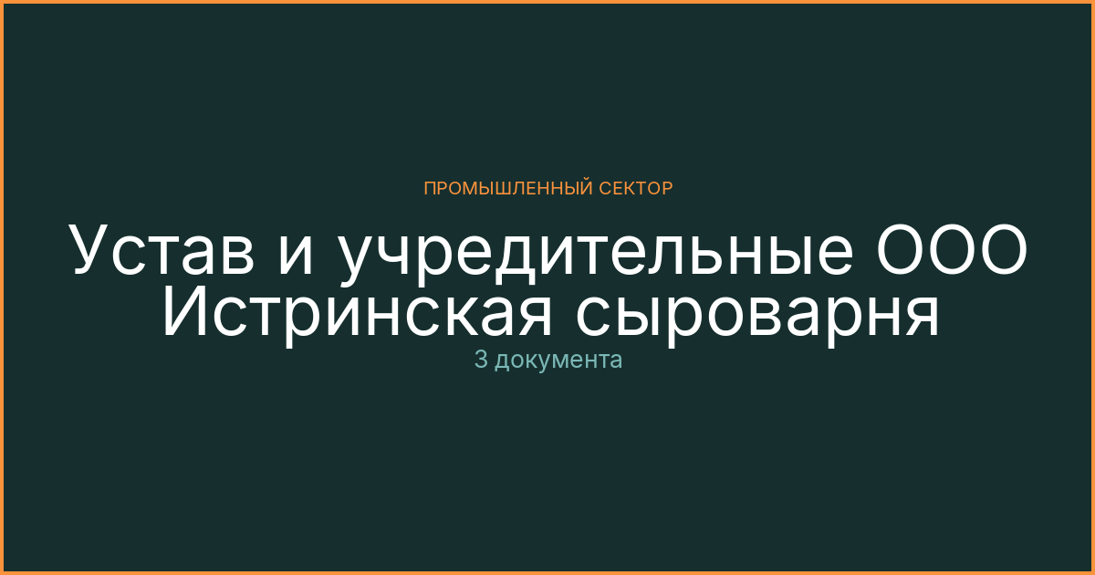 Официальные документы раздела «Уставные документы» эмитента ООО ИСТРИНСКАЯ СЫРОВАРНЯ