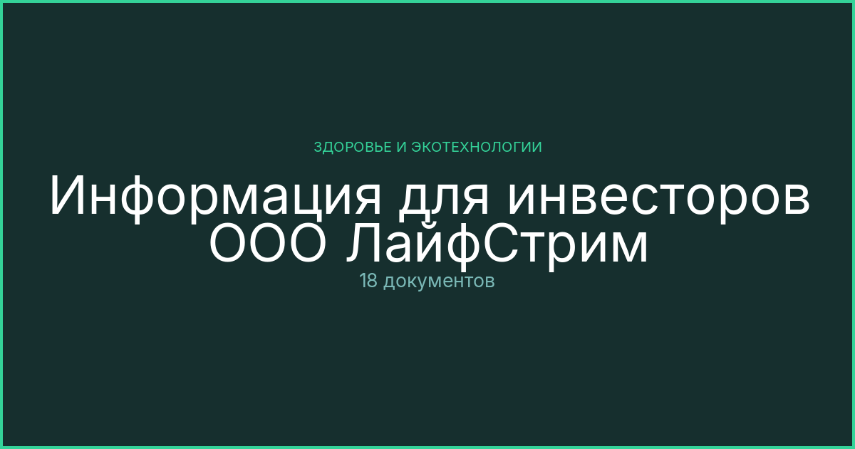 Материалы для инвесторов ООО ЛайфСтрим