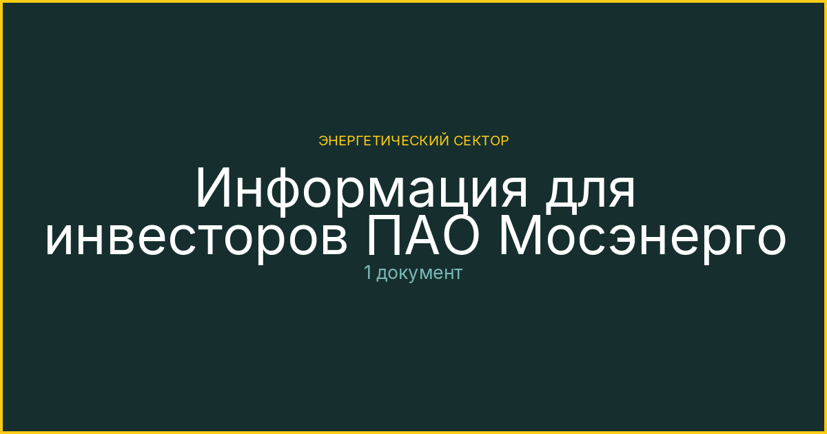 Официальные документы раздела «Материалы для инвесторов» эмитента ПАО энергетики и электрификации Мосэнерго