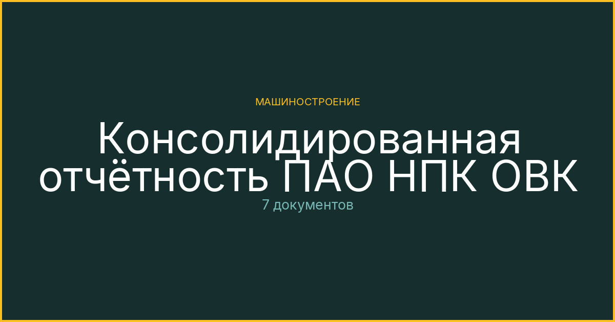 Консолидированная отчётность ПАО НПК ОВК