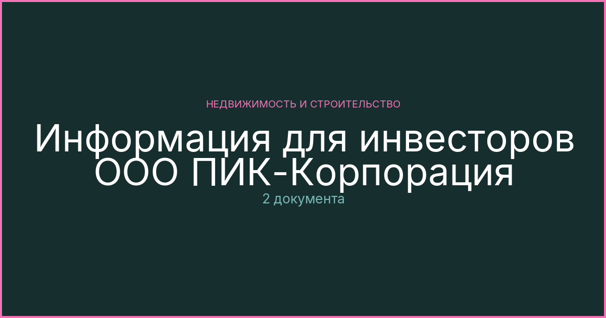 Материалы для инвесторов ООО ПИК-Корпорация