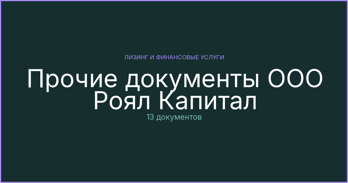 Прочие материалы ООО Роял Капитал