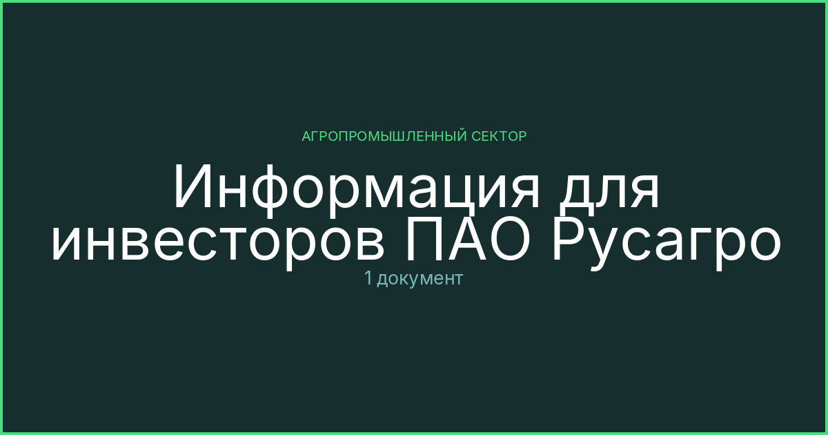 Материалы для инвесторов ПАО Русагро