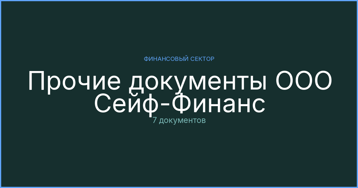 Прочие материалы ООО Сейф-Финанс