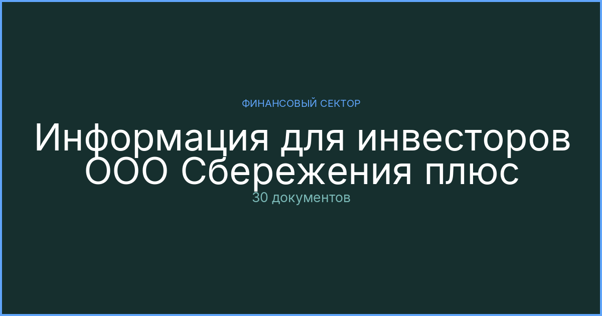 Официальные документы раздела «Материалы для инвесторов» эмитента ООО Сбережения плюс