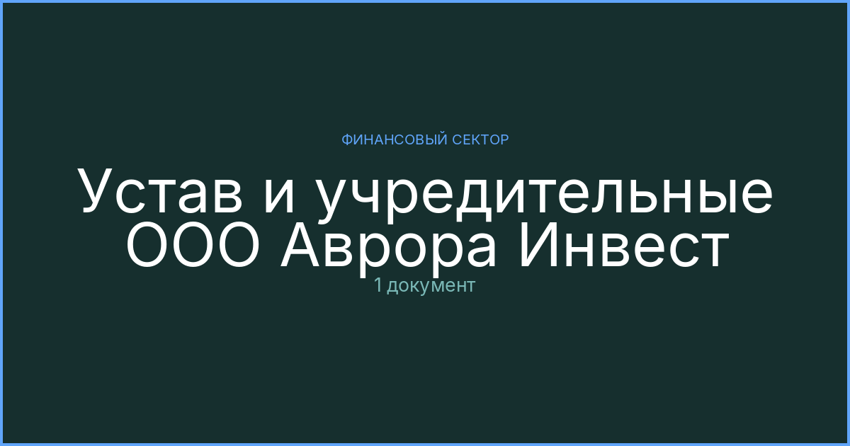 Уставные документы ООО Аврора Инвест