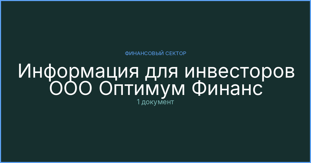 Материалы для инвесторов ООО Оптимум Финанс