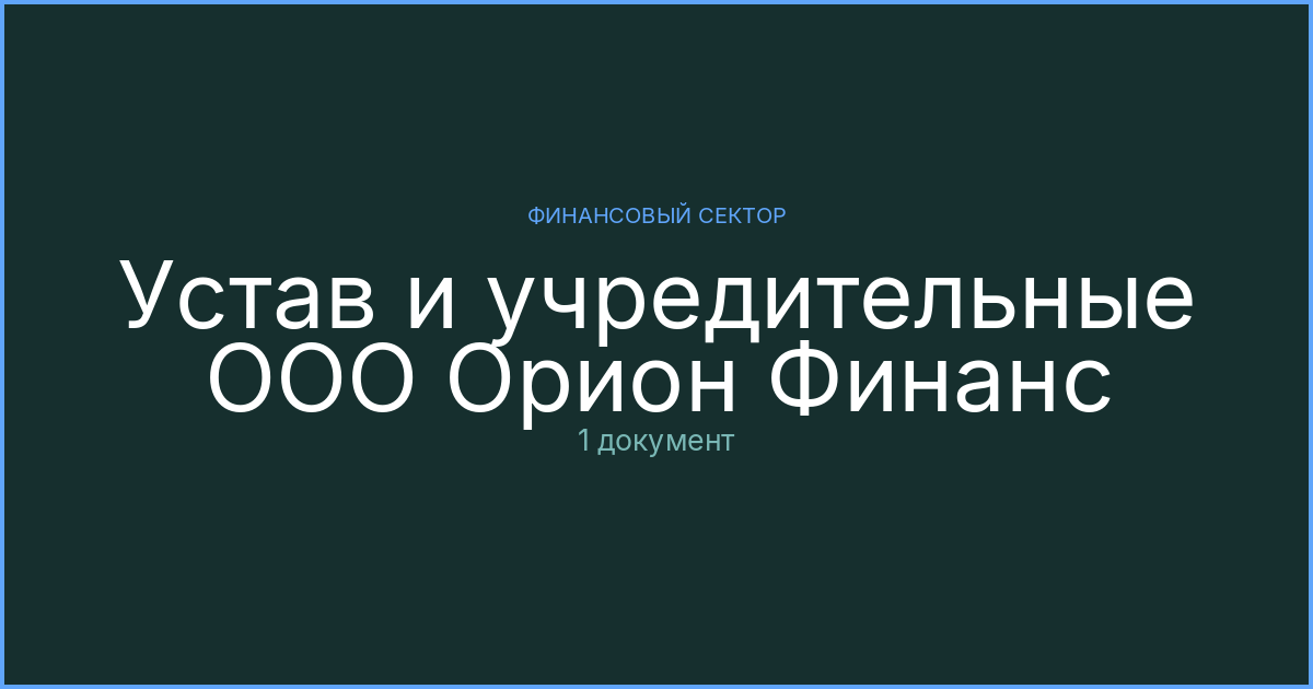 Уставные документы ООО Орион Финанс