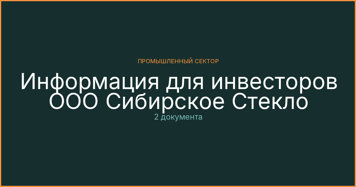 Материалы для инвесторов ООО Сибирское Стекло