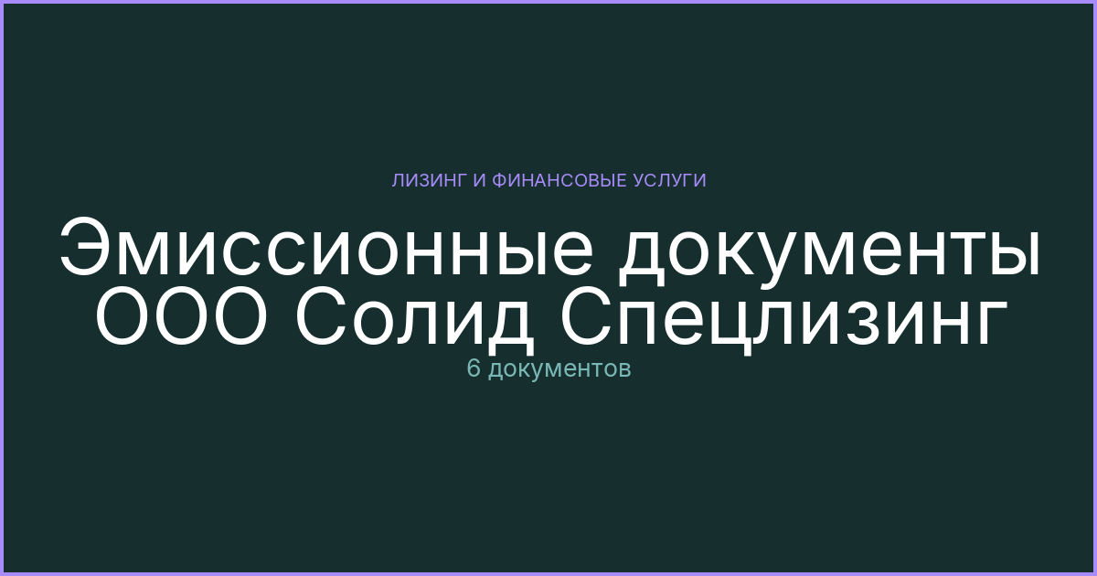 Эмиссионные документы ООО Солид Спецлизинг
