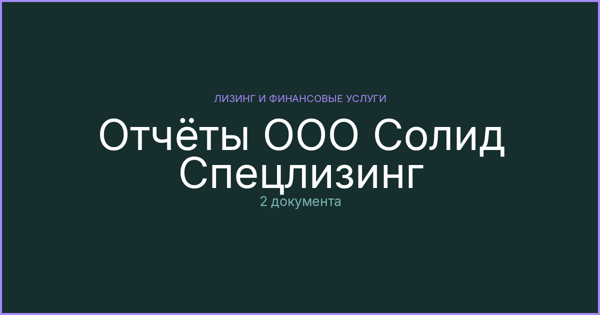 Отчёты эмитента ООО Солид Спецлизинг