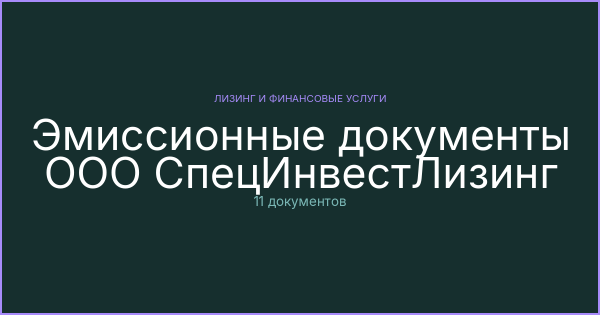 Эмиссионные документы ООО СпецИнвестЛизинг