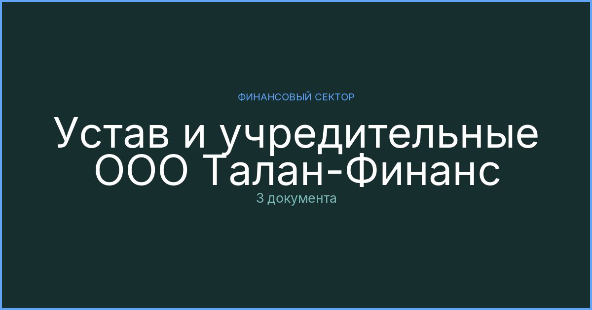 Уставные документы ООО Талан-Финанс