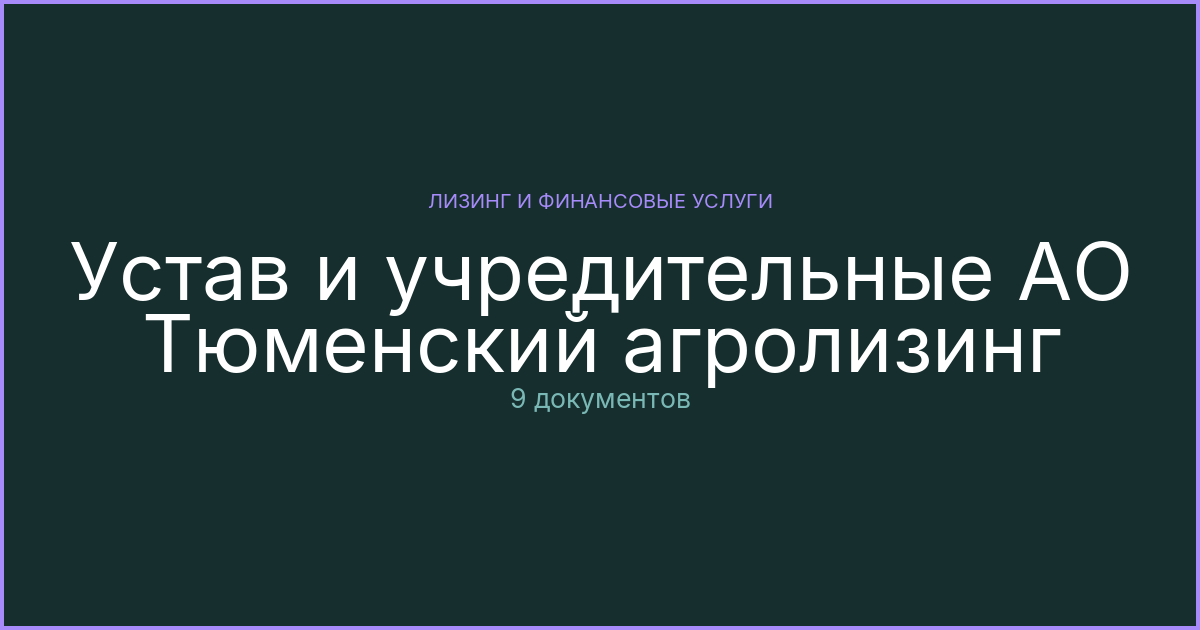 Уставные документы АО Тюменский агролизинг