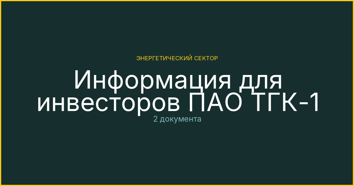 Материалы для инвесторов ПАО ТГК-1