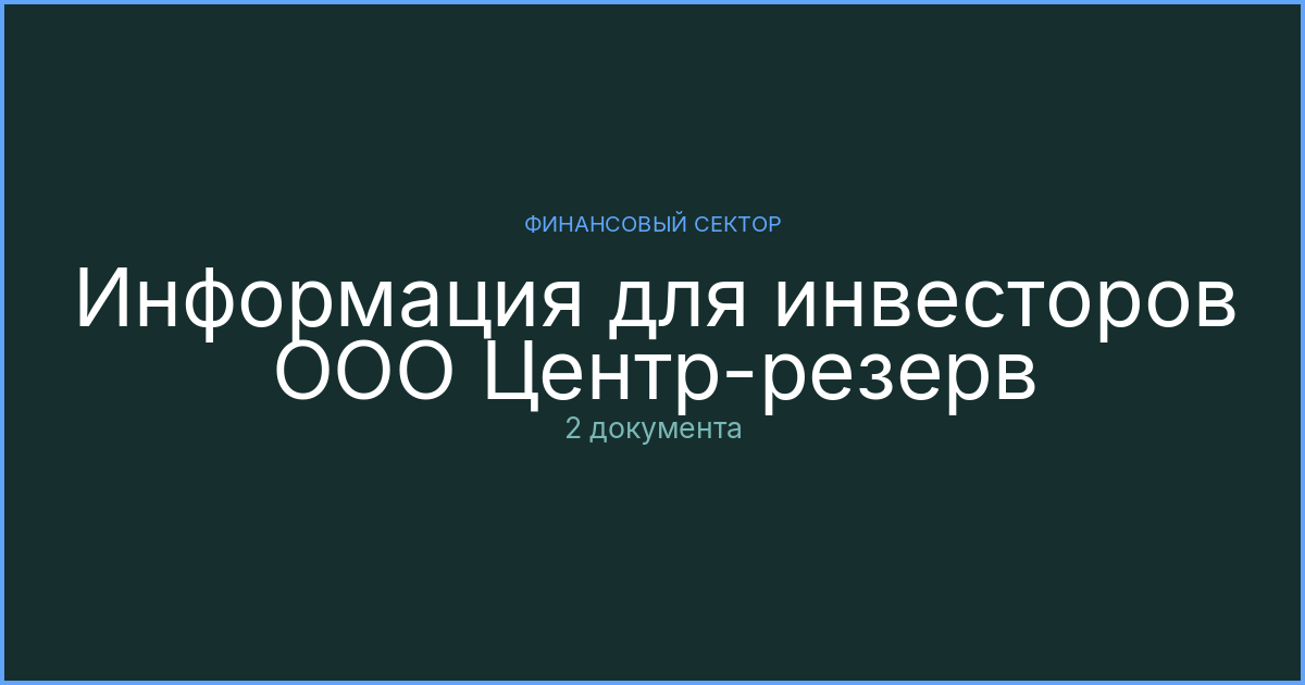 Материалы для инвесторов ООО Центр-резерв