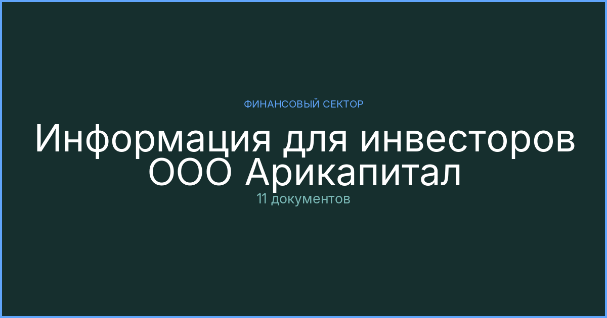 Материалы для инвесторов ООО Арикапитал