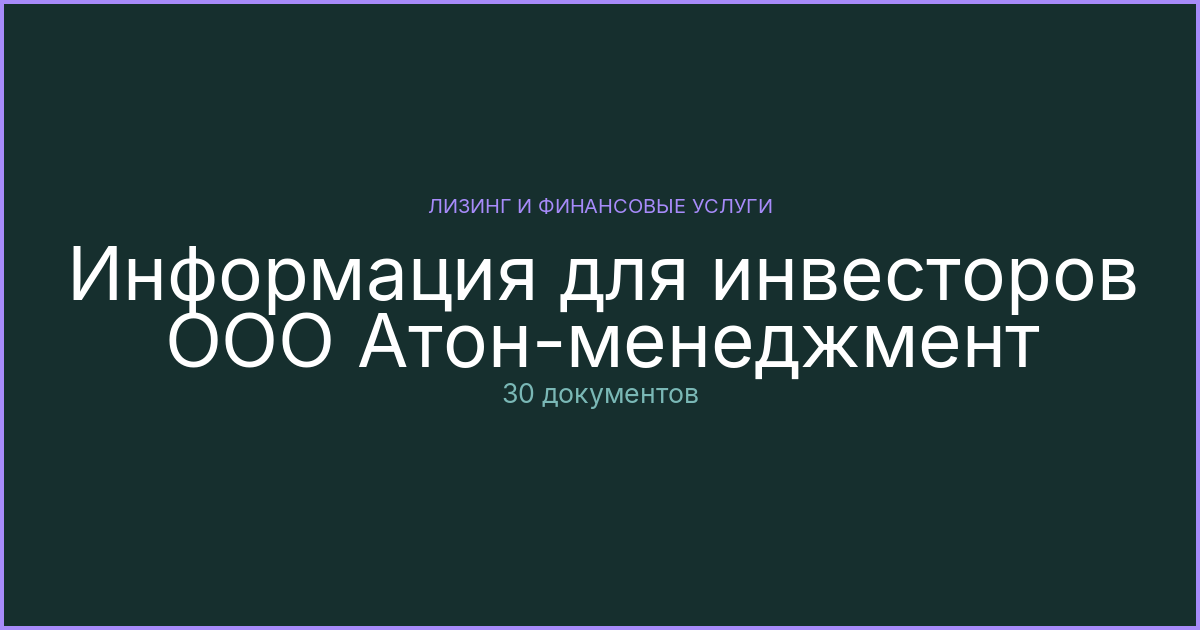 Официальные документы раздела «Материалы для инвесторов» эмитента ООО Управляющая компания Атон-менеджмент