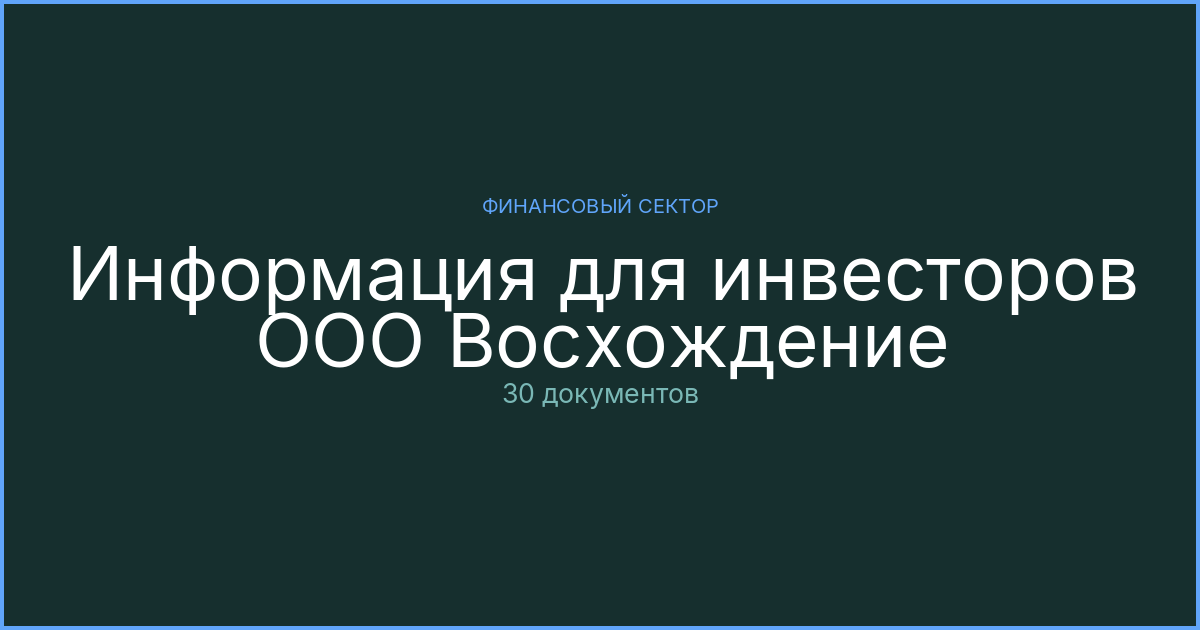 Материалы для инвесторов ООО Восхождение